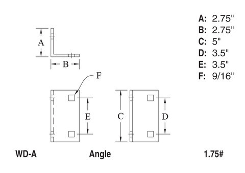 Used for attaching cross stringers to side stringers. Two Washer Plates (WD-W) are used with each Angle to sandwich lumber and provide a solid connection.