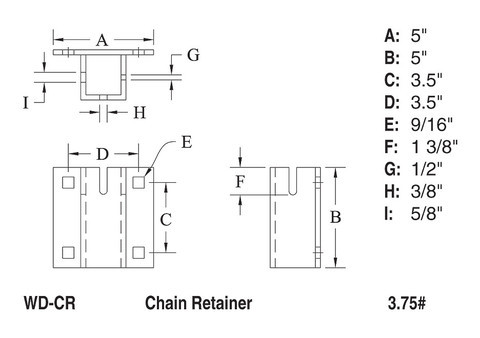 These are typically bolted to the side of the dock or to a cross stringer and can accommodate up to 1/2″” chain to hold the dock in place. Use a WD-B as a backup plate. There is also an XL Chain Retainer available.